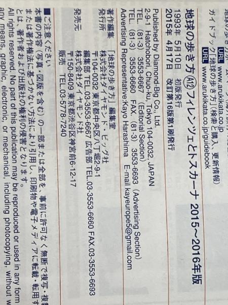 A12 地球の歩き方 フィレンツェとトスカーナ 2015~2016 ダイヤモンド・ビッグ社 地球の歩き方編集室