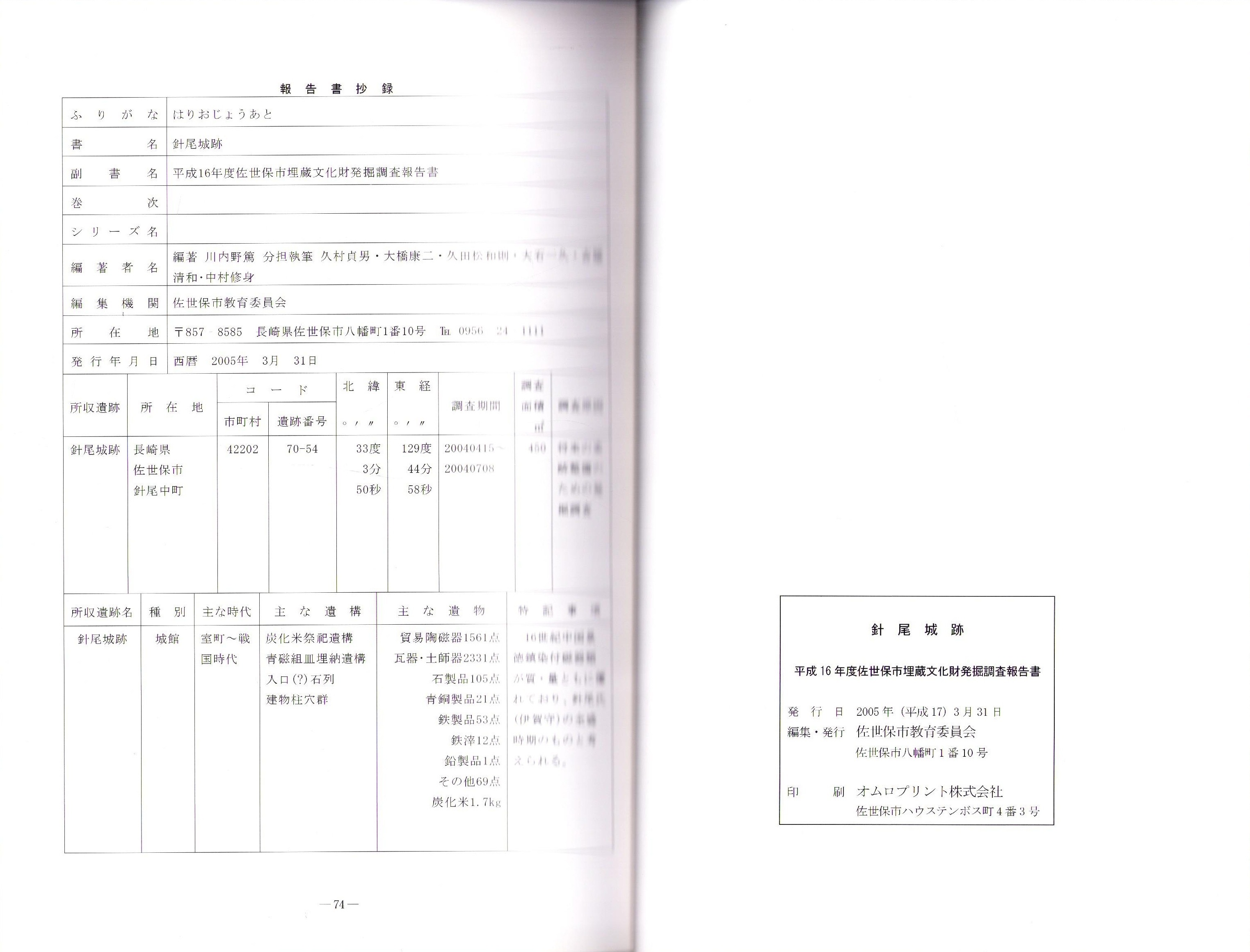 針尾城跡 -平成16年度佐世保市埋蔵文化財発掘調査報告書-(長崎県)