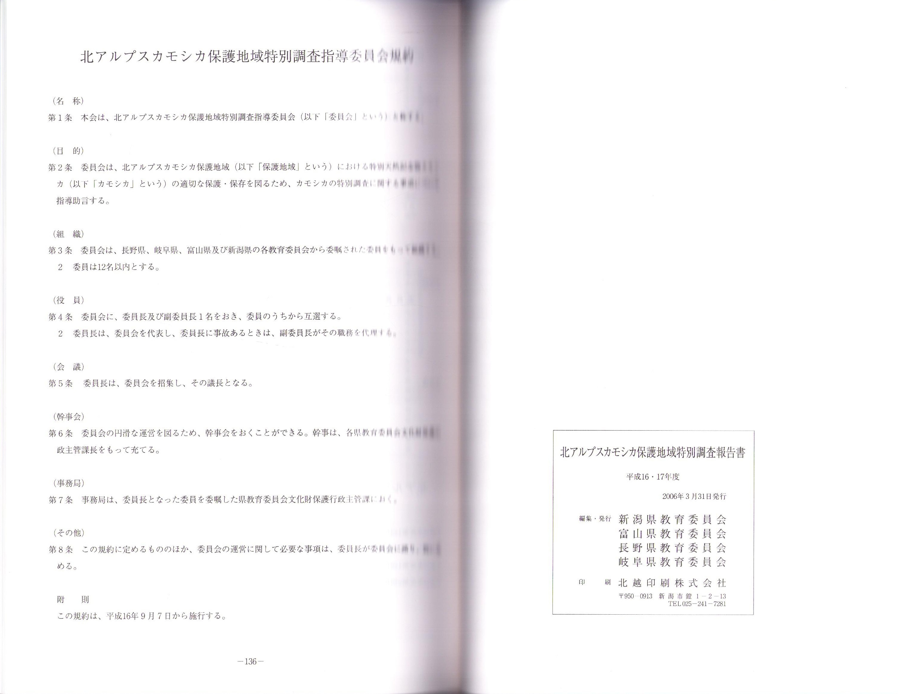 北アルプスカモシカ保護地域 特別調査報告書 -平成16・17年度-