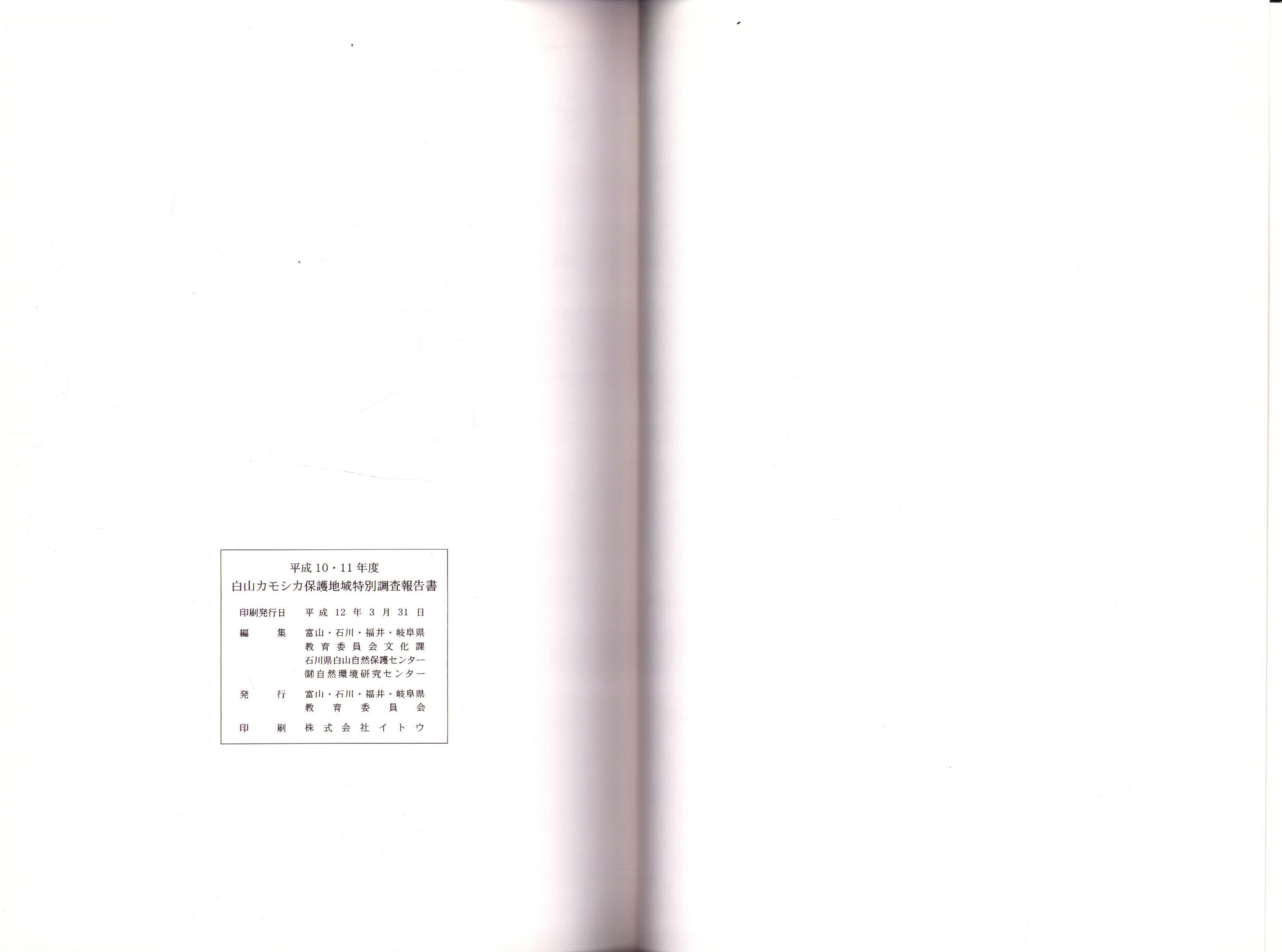 白山カモシカ保護地域 特別調査報告書 -平成10・11年度-