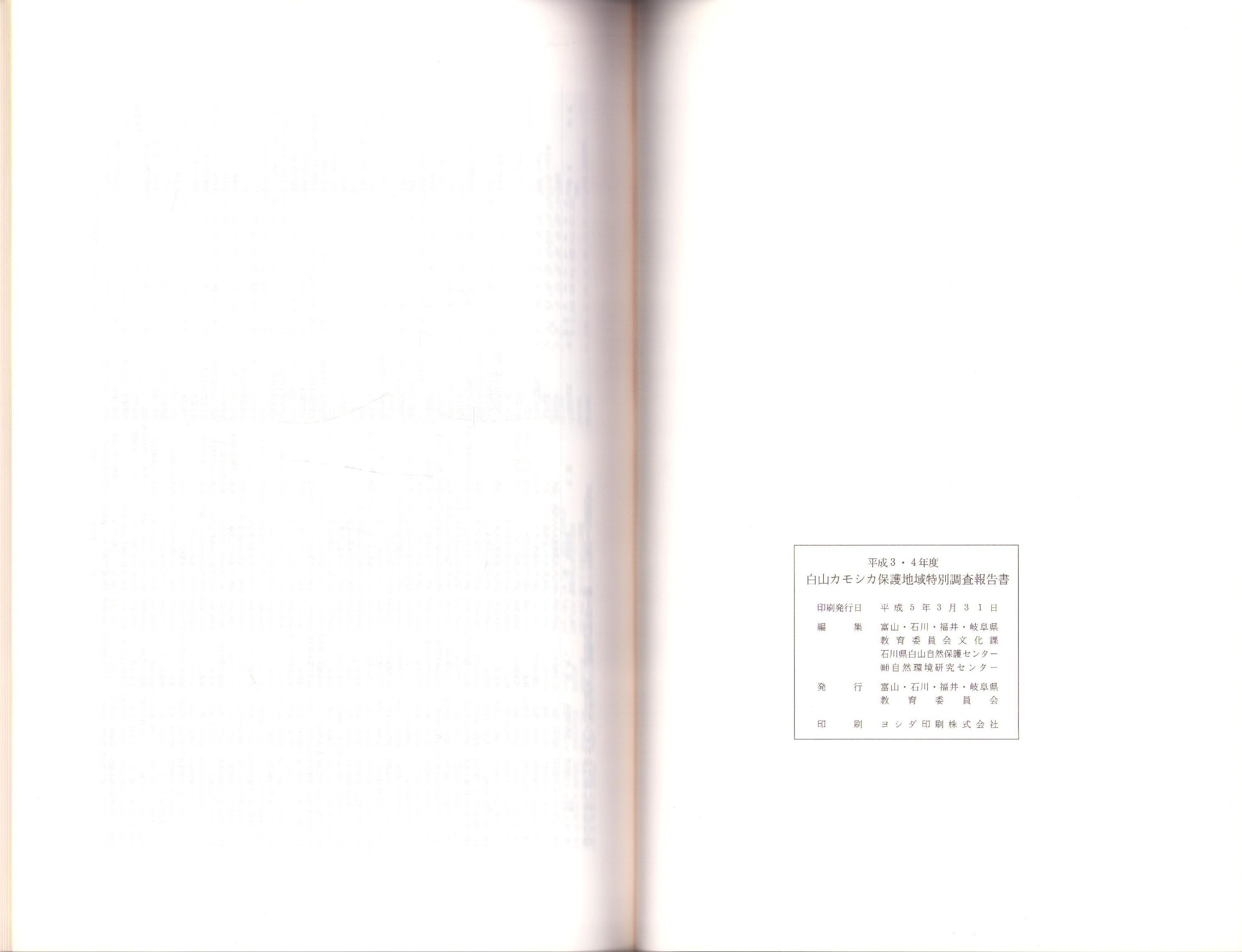 白山カモシカ保護地域 特別調査報告書 -平成3・4年度-