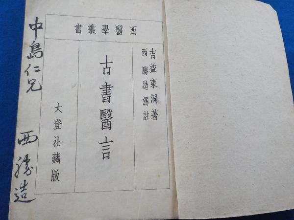 • 解説 非売品會員頒布  限定壹千部  西醫學叢書  西勝造譯註 和本  表紙背付近キズ  扉に謹呈署名  小口見返し本文一部経年によるシミヤケ  腹角一部14頁分虫食い