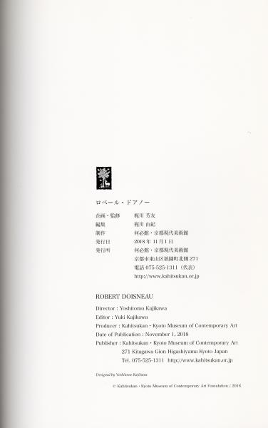 An exhibition catalog by French photographer Robert Doisneau was published for his 2018 exhibition at Kahitsukan in Kyoto.