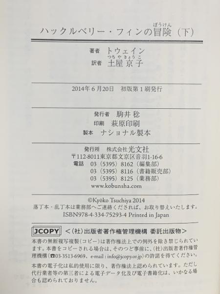 ハックルベリー・フィンの冒険(下) 光文社 マーク トウェイン