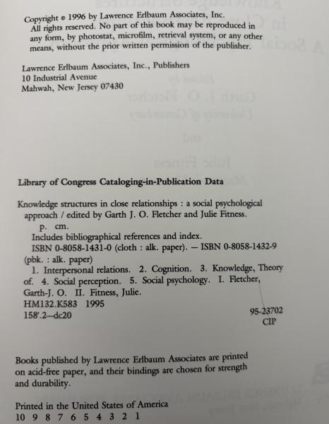 【英語洋書】『Knowledge Structures in Close Relationships: A Social Psychological Approach』:親密な関係における知識構造:社会心理学的アプローチ