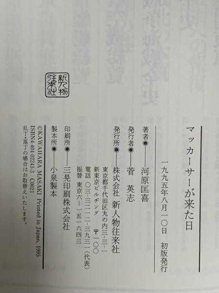 マッカーサーが来た日: 8月15日からの20日間 新人物往来社 河原 匡喜