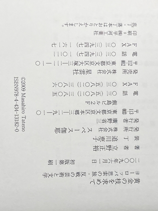 ※イタミ有 黄金の枝を求めて: ヨーロッパ思索の旅・反戦の芸術と文学 スペース伽耶 立野 正裕