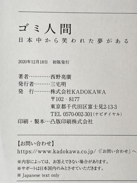※カバー無し ゴミ人間 日本中から笑われた夢がある KADOKAWA 西野 亮廣