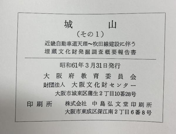 [城山]その1 埋蔵文化財発掘調査概要報告書 大阪府教育委員会 財団法人大阪文化財センター昭和61年