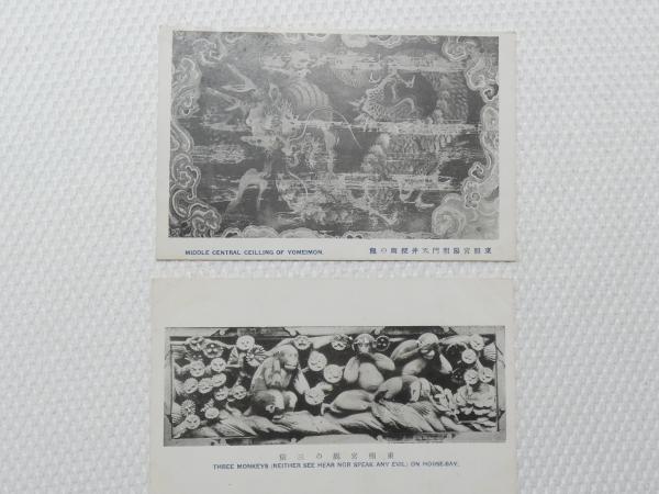 1000568■戦前 絵葉書■栃木県 東照宮陽明門天井探霊の龍 東照宮鹿の三猿 2枚