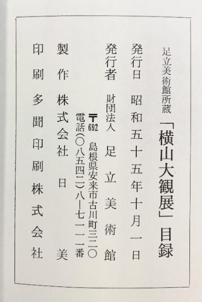 【図録】横山大観展 足立美術館 昭和55年 財団法人足立美術館
