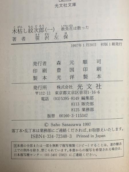 木枯し紋次郎 (一) 赦免花は散った 光文社 笹沢 左保
