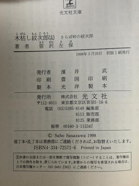 木枯し紋次郎 15 さらば峠の紋次郎 光文社 笹沢 左保