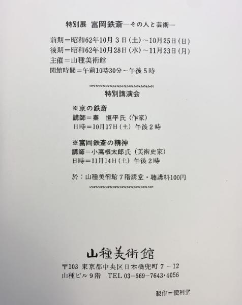 【図録】特別展 富岡鉄斎-その人と芸術-山種美術館 昭和62年
