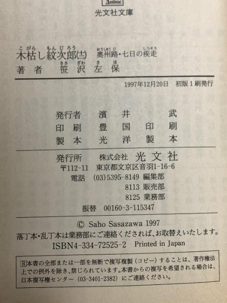 木枯し紋次郎 12 奥洲路・七日の疾走 光文社 笹沢 左保