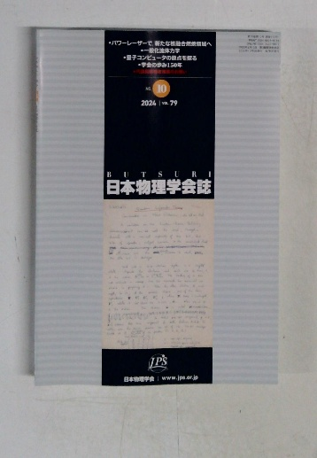 BUTSURI 日本物理学会誌 NO.10 2024年10月号 VOL.79