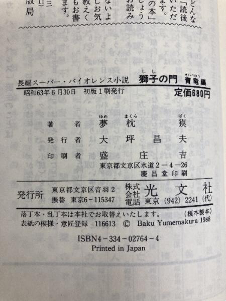 獅子の門 青竜編 光文社 夢枕 獏