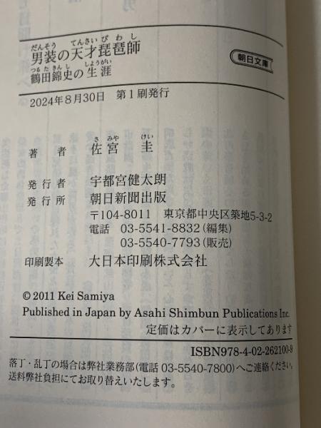男装の天才琵琶師 鶴田錦史の生涯 (朝日文庫) 朝日新聞出版 佐宮圭