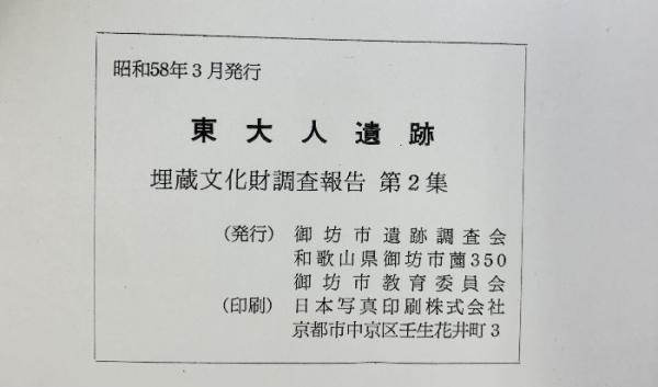 東大人遺跡(和歌山県御坊市)埋蔵文化財発掘調査報告第2集 1983年3月 御坊市遺跡調査会