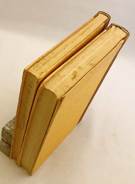 全体的に経年によるヤケがあります。表紙にややスレ・部分的に薄いくすみ汚れやシミ・一部にシワや小凹み等、経年による傷みがあります。また小口に部分的にシミ・2巻の小口に書き入れ、見返しに記名・シミ、1巻の見返しの綴じに劣化・書き込み、本文20ページ程にマーカー線引き・書き込みがあります。それ以外は特に問題はありません。