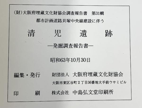 清児遺跡発掘調査報告書 (大阪府)1988年 大阪府埋蔵文化財協会