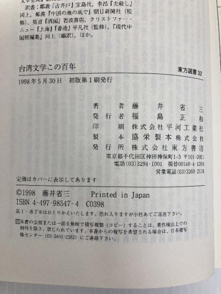 台湾文学この百年 (東方選書 32) 東方書店 藤井 省三