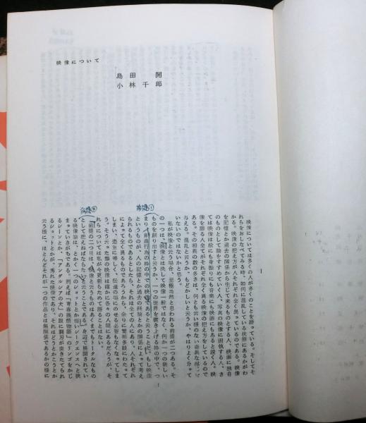 • 解説 第2号島田開「研究報告アリスタルコ映画理論史」に線引き10頁分 第4号島田開、小林千郎「映像について」、島田開「河ーあの裏切りが重く」に線引き書き込み7頁分」 6号裏表紙に小書き込み 画像参照(掲載画像をクリック) 発送はレターパックプラス料金