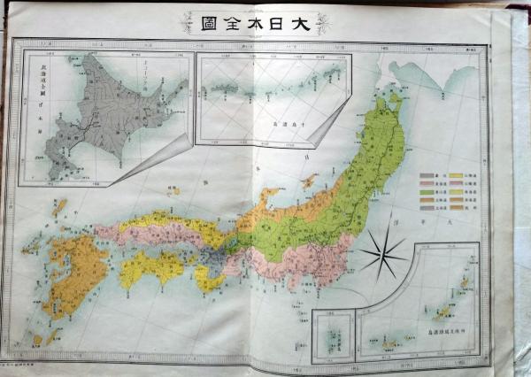 古地図 教科摘要 帝国新地図 日本地図 千島列島 村山義行・山本明納 三省堂 明治25年〇和本古書古文書