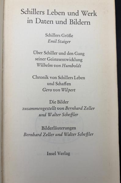 【ドイツ語洋書】『Schillers Leben und Werk in Daten und Bildern(シラーの生涯と作品:データと図版による記録)』。