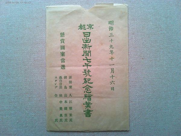 【絵葉書】京都日出新聞第7千號記念絵葉書 明治三十九年十一月十六日3枚組  袋付き