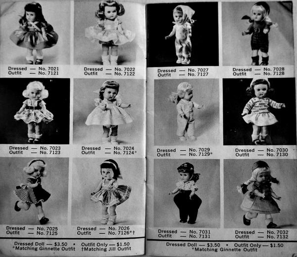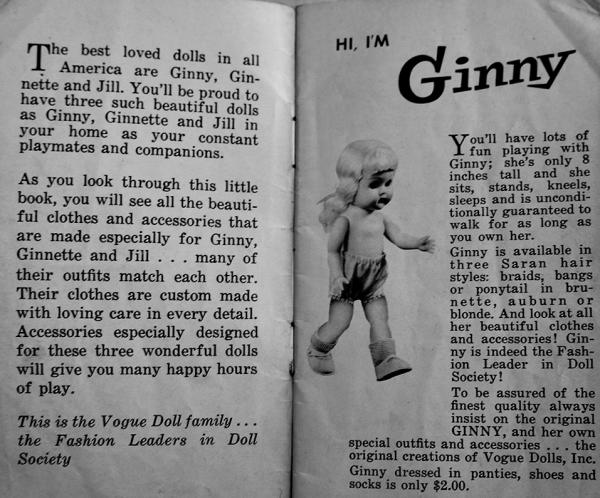 ジニーは、1948年に発表された同社初の人形。ジネットは1955年に発表。ティーンエイジャーの妹ジルは1957年に発表。