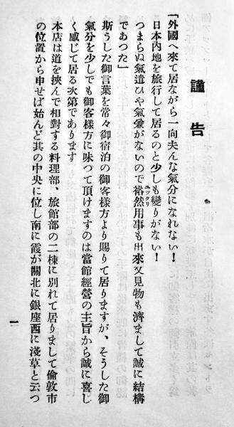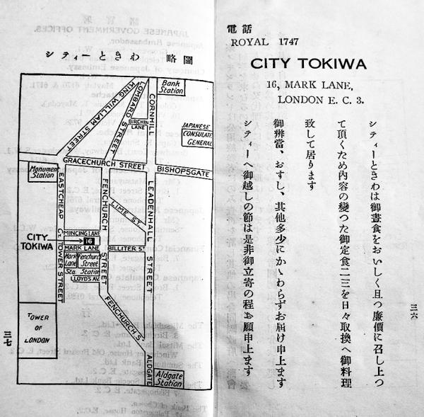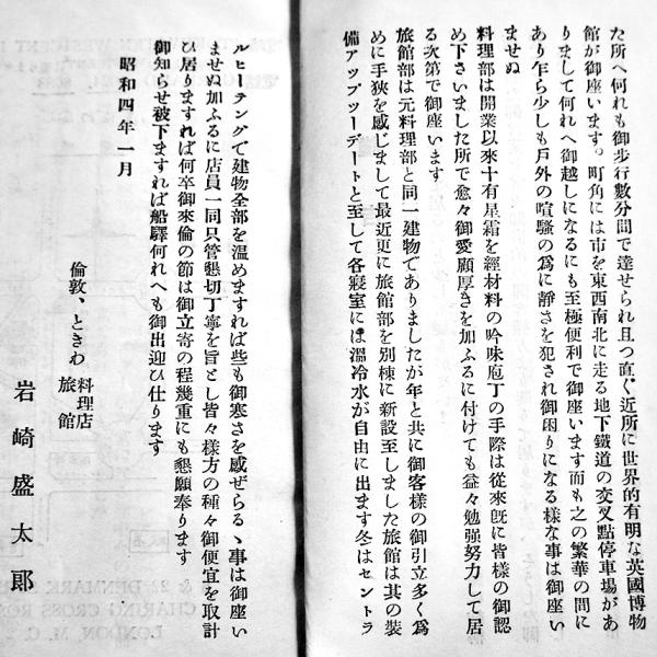 倫敦乃栞(Londonロンドン)17×9.5㎝38p 料理店旅館ときわ 昭和4年