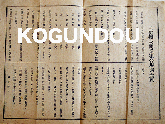 煙火価格表/三河煙火同業組合規則大要 B5判両面印刷 愛知県三河煙火同業組合 花火 明治〜大正頃