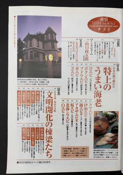 サライ 1998/1/1 特集:特上のうまい海老/日本全国・明治の洋館 文明開化の棟梁たち/ホット・カクテル/山口政五郎/犬養智子/日本の辛味