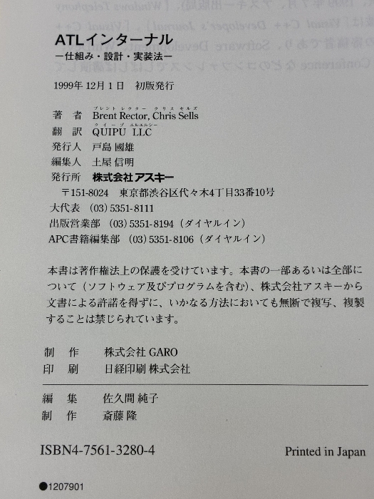 ATLインターナル (ASCII AddisonWesleyProgrammingSerie) アスキー Brent Rector