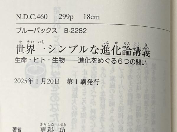世界一シンプルな進化論講義 生命・ヒト・生物――進化をめぐる6つの問い (ブルーバックス B 2282) 講談社 更科 功