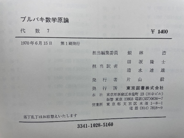 ブルバキ数学原論 第7 代数