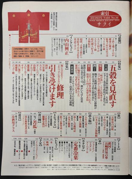 サライ 1994/8/18 特集:古代の知恵を今に生かす 五穀を見直す/愛用品修理/内山興正/定番冷菓/鎖国・長崎貿易の華