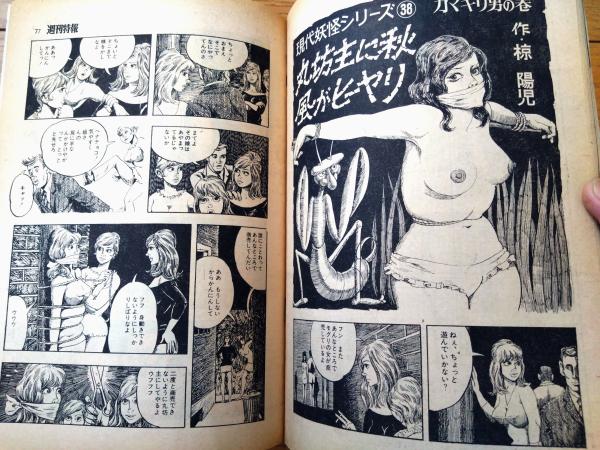 【週刊特報(昭和44年10月23日号)】「現代妖怪シリーズ・カマキリ男の巻/椋陽児」・荒間十郎・阿木二郎・歌川大雅・土器豊人等