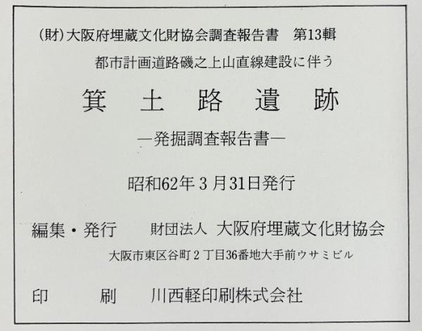 箕土路遺跡-発掘調査報告書-(大阪府)1987年 大阪府埋蔵文化財協会