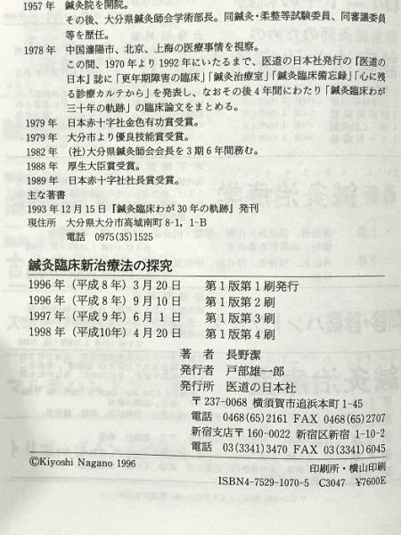 鍼灸臨床新治療法の探究 医道の日本社 長野 潔