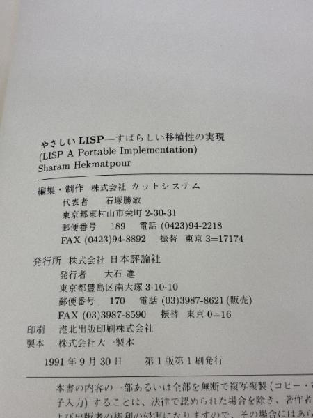 【※付属品欠品・カバー無し】やさしいLISP: すばらしい移植性の実現 日本評論社 S. ヘクマトプール