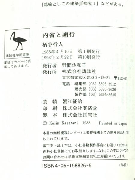 内省と遡行 (講談社学術文庫 826) 講談社 柄谷 行人 講談社 柄谷 行人