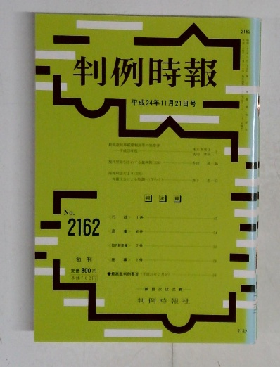 判例時報 平成24年11月21日号 No2162