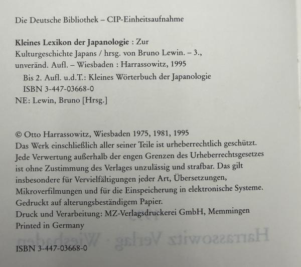 【ドイツ語洋書】『Kleines Lexikon der Japanologie: Zur Kulturgeschichte Japans』(日本学小事典:日本の文化史について)②