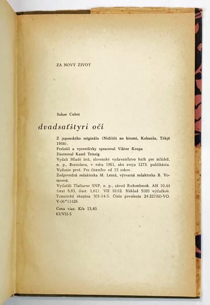 • 著者 Sakae Cuboi(壺井栄)/翻訳:Viktor Krupa/挿絵・装丁:Karel Teissig