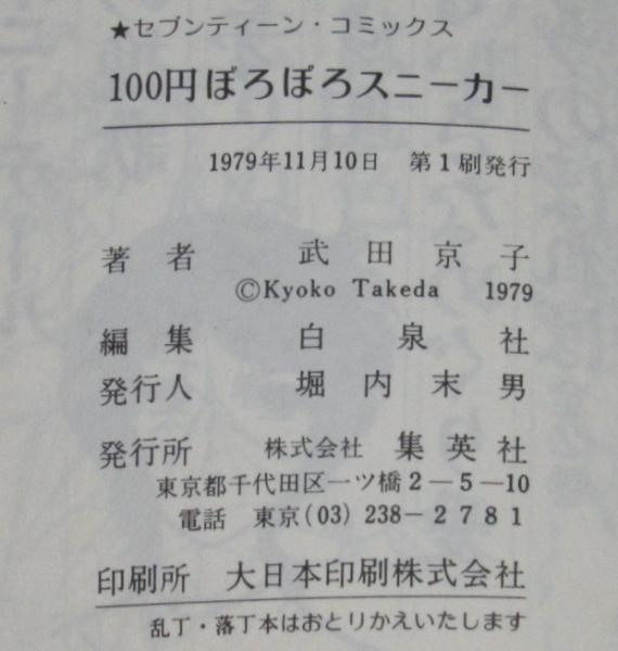 • 解説 武田京子 100円ぼろぼろスニーカー 集英社セブンティーンコミックス 1979年11月第1刷 新書判.