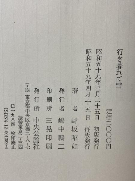 行き暮れて雪 中央公論社 野坂 昭如