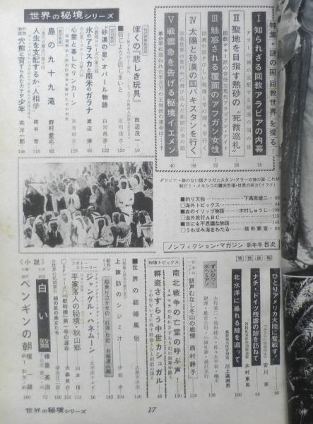 ノンフィクション・マガジン 特集/謎の国“回教世界”を探る Ⅰ/知られざる回教アラビアの内幕 Ⅱ/聖地を目指す熱砂の“死骸巡礼” Ⅲ/魅惑される覆面のアフガン女性 Ⅳ/太陽と砂漠の国パキスタンを行く Ⅴ/戦雲急を告げ