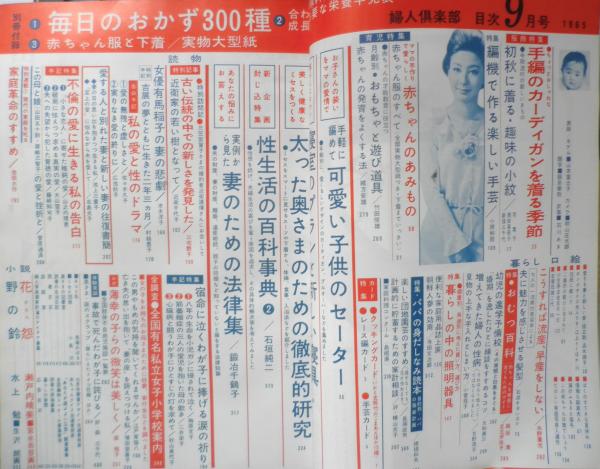 付録欠 手編のカーディガンを着る季節 こうすれば流産、早産をしない おむつ百科 暮らしの中の照明器具 パパの身だしなみ読本 手軽に編めて可愛い子供のセーター 寝室のプランと新しい寝具 太った奥さまのための徹底的研究 実例から見た妻のための法律集 全調査/全国有名私立女子小学校案内 他
